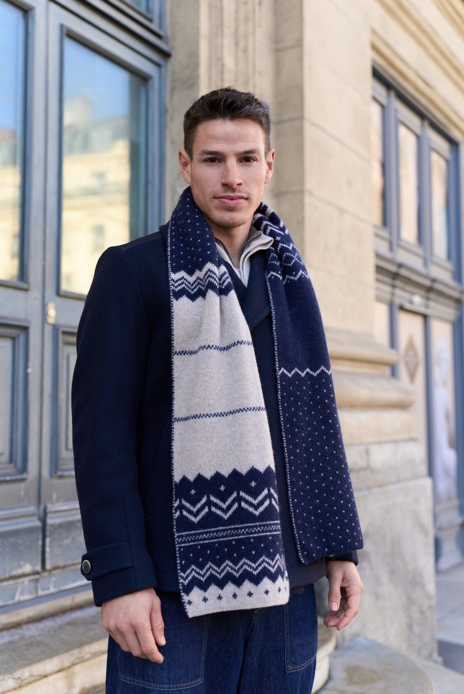 Enjoy the magic of winter with the Nicolas scarf and its festive-inspired pattern. With its graphic Christmas knit details, it instantly adds a warm, cheerful and comforting touch to your outfits.
